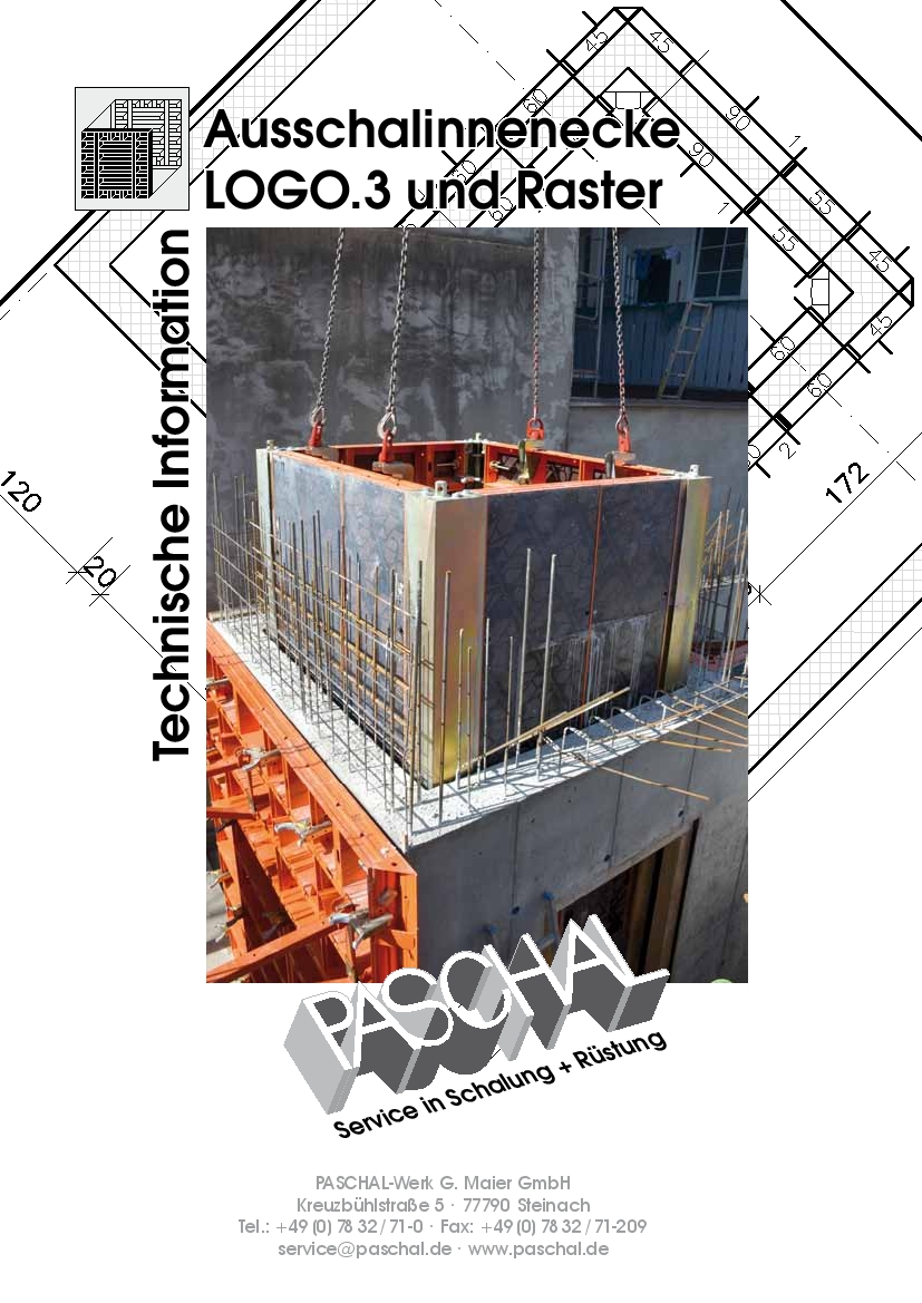 Das Großflächenelement 340 x 270 cm wird auf 270 cm Schalhöhe im Wohnungsbau eingesetzt und ebenso ist der Einsatz auf 340 cm Schalhöhe im Industriebau möglich. Dadurch ist eine hohe Auslastung der Schalung garantiert. Die großen Elementbreiten reduzieren dazu noch die Anzahl der Verbindungsmittel und dadurch auch die Schalzeiten auf ein Minimum. LOGO.3 Ausschal-Innenecke Ausschalen leicht gemacht. Mit der verstellbaren Ausschal-Innenecke lassen sich geschlossene Innenkernschalungen bei Schächten oder Treppenhauskernen zusammenziehen. Zwischen Schalung und Beton entsteht ein Freiraum von 5 cm, sodass die gesamte Schalung in einem Stück gezogen werden kann. Für den nächsten Betoniertakt genügt das Zurückspindeln an den vier Ecken und die Schalung ist wieder einsatzfertig.