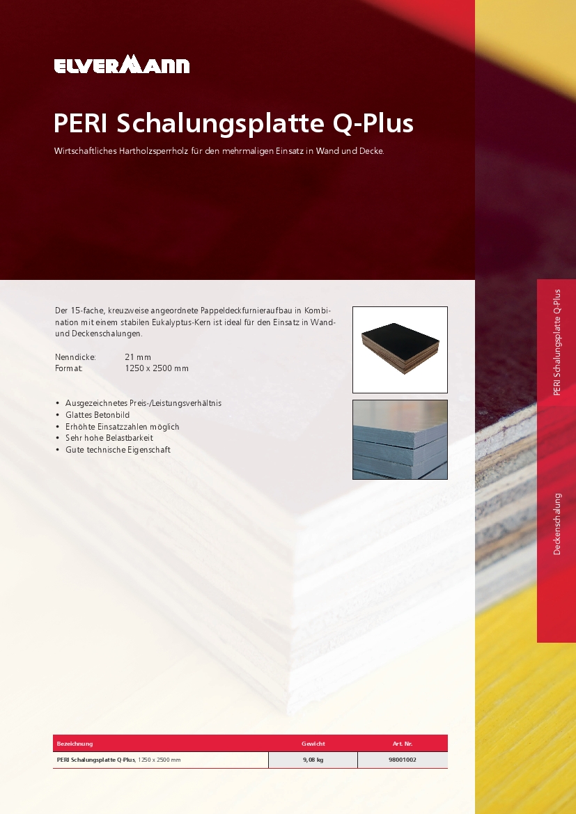 Der 15-fache, kreuzweise angeordnete Pappeldeckfunieraufbau in Kombination mit einem stabilen Eukalyptus-Kern punktet mit einem hervorragenden Preis-Leistungsverhältnis, guten technischen Eigenschaften und einer einfachen Bearbeitungsmöglichkeit - ideal für den Einsatz in Wand- und Deckenschalungen.